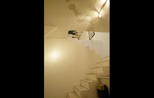 さらに、六本木コンプレックスなどを経て、池内氏は現在のレントゲンヴェルケを2008年に開設。築50年の元繊維倉庫をリノベーションしたこのギャラリーは、入り口に入るといきなり約4mある吹き抜けの空間となっている。吸い込まれるように階段を上がると展示スペースへと誘われる。ホワイトキューブの空間は、作品の持つ吸引力をいっそう高めている。