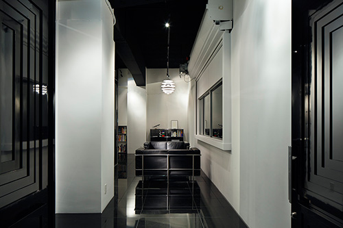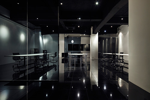 「COSMOS」をコンセプトにした白と黒を基調にしたオフィスは、天井照明を星に見立て御影大理石の床に反射させる事により、「創造の宇宙(COSMOS)」を表現しており、ここから無限のクリエイションがうまれる事を期待し、デザインしたという。