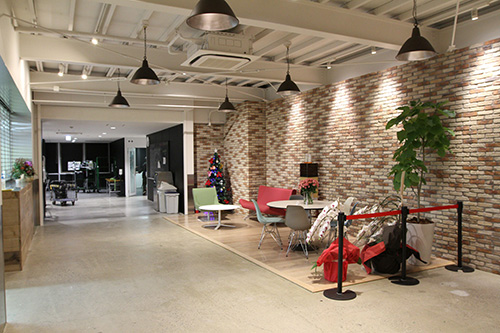 同オフィスのデザインを手掛けたシェルフの谷利貞氏は、「元倉庫に入居するということで、機能性を追及し、打ちっ放しのコンクリートの床や化粧板のないむき出しの天井など倉庫のダイナミックなイメージを生かしたデザインにした。また、コンクリートや鉄という無機質な素材と木材、レンガを組み合わせ、シャープでありながら、暖かみも感じさせる空間づくりを目指した」という。