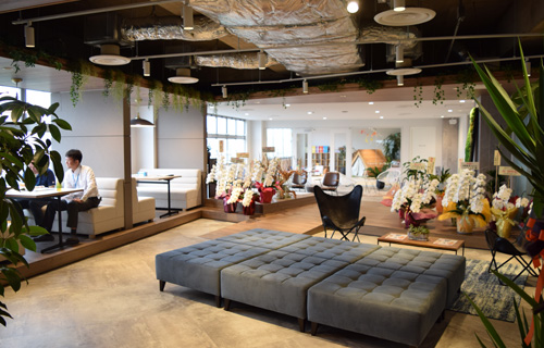 5階に足を踏み入れると、白を基調とした明るい空間が拡がる。木目調のファニチャーの合間に植栽を配し、カフェのような雰囲気。