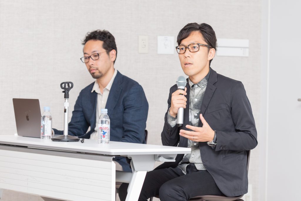 オフィスと商業施設を中心としたインテリアデザインを得意とするSIGNALの徳田純一氏と新海一朗氏は、「物流施設における人のための空間のデザイン」をテーマに、物流不動産運用大手のグッドマンの大規模物流施設の外観カラーリングやエントランスまわり、アメニティエリアのデザインについて講演した。